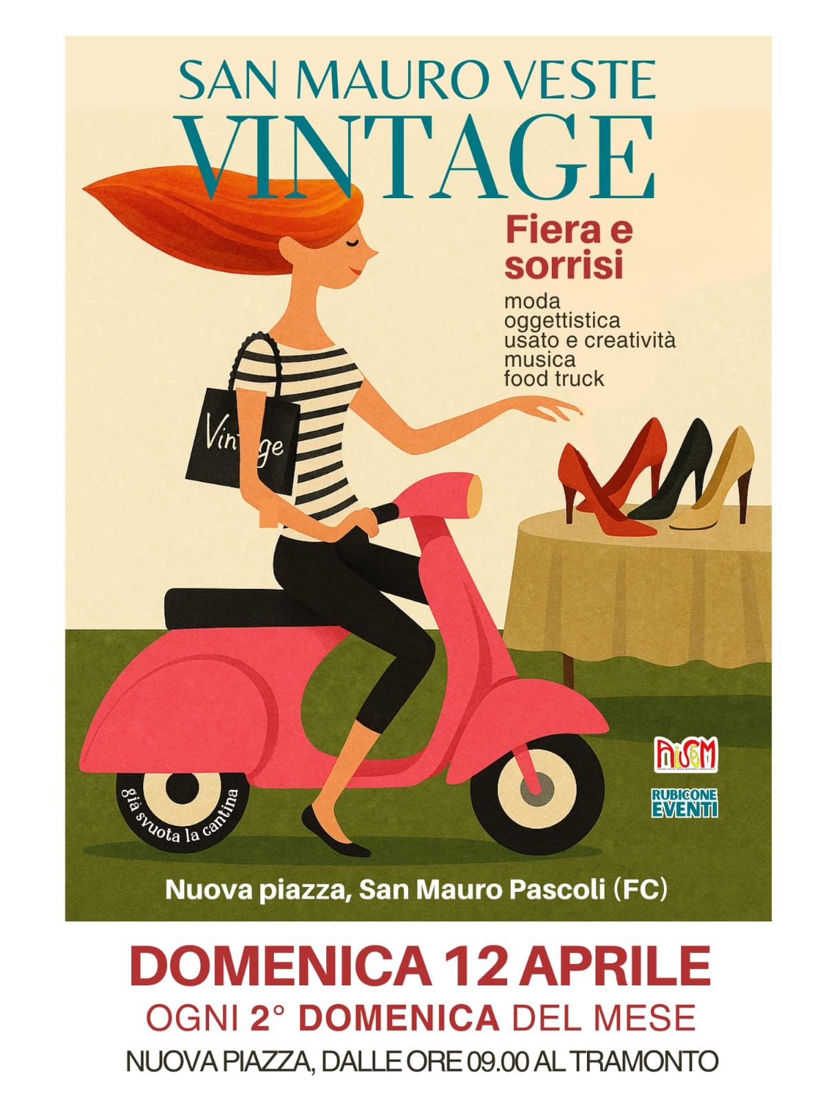 Novità 2026 ! Arriva per la prima volta l'appuntamento domenicale con "SAN MAURO VESTE VINTAGE - FIERA E SORRISI" Domenica 12 aprile, dalle ore 09.00 al tramonto, la prima edizione nel centro di San Mauro Pascoli assieme a più di 150 espositori di vintage, riuso, upcycling, handmade e creatività.