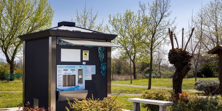 Parco di 2.500 mq in pieno centro, con panchine, vialetti accessibili e una casetta scambio libri.
